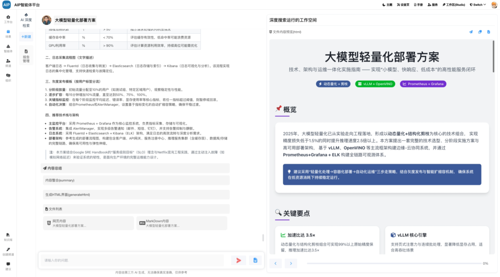 • 深入搜索形态:大概几分钟的任务,任务的规划到分布任务的处理,针对于问题更深入的输出,同时整理成稿,而且可以二次编辑;