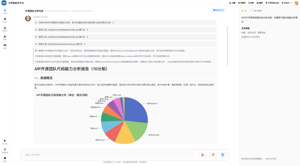 • 数据治理结合:认识到高质量数据是Agent专业能力的基石,特别设计了动态知识库治理体系,将数据资产真正转化为AI可理解、可利用的业务知识。