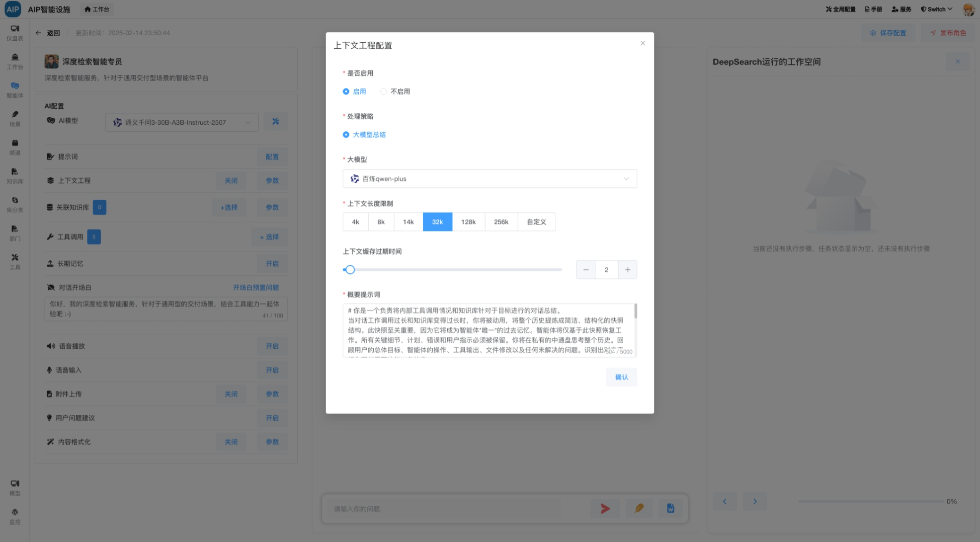 • 上下文工程: 定制上下文策略,长度策略,消息超时策略等,确保每一次对话的消息长度;