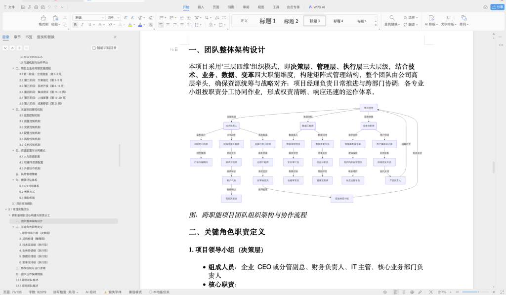 下面是出来的一份技术标书示例,已经按招标需求整理了需要的目录章节,然后再过一下内容点,基本上会环绕需求内容来进行描述,如果发现某个章节不符合或者偏离较大,或者重新生成或者进行小范围的二次修改,如下重新生成: