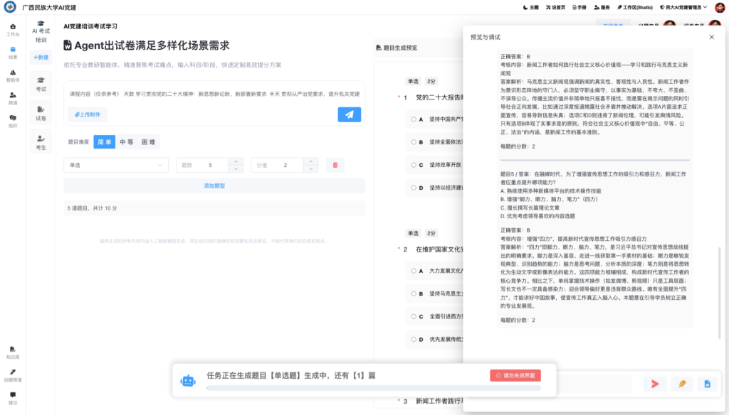 • AI党建学习: AI考试阅卷,结合AI党务顾问多智能体结合。