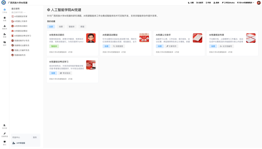 • AI党建策划: 针对主题党日活动生成创意方案,同时为红色教育活动整合资源、规划路径,提升党建活动的策划质量与创新性