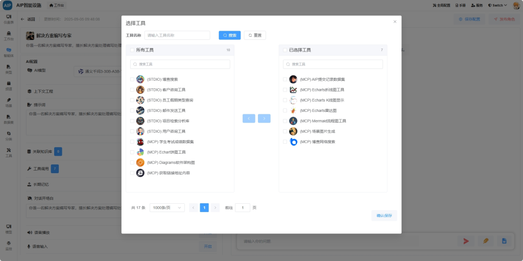 • 内部知识库:企业内部知识库、网络搜索、方案模板、历史方案、标准模板、技术白皮书、制度规范